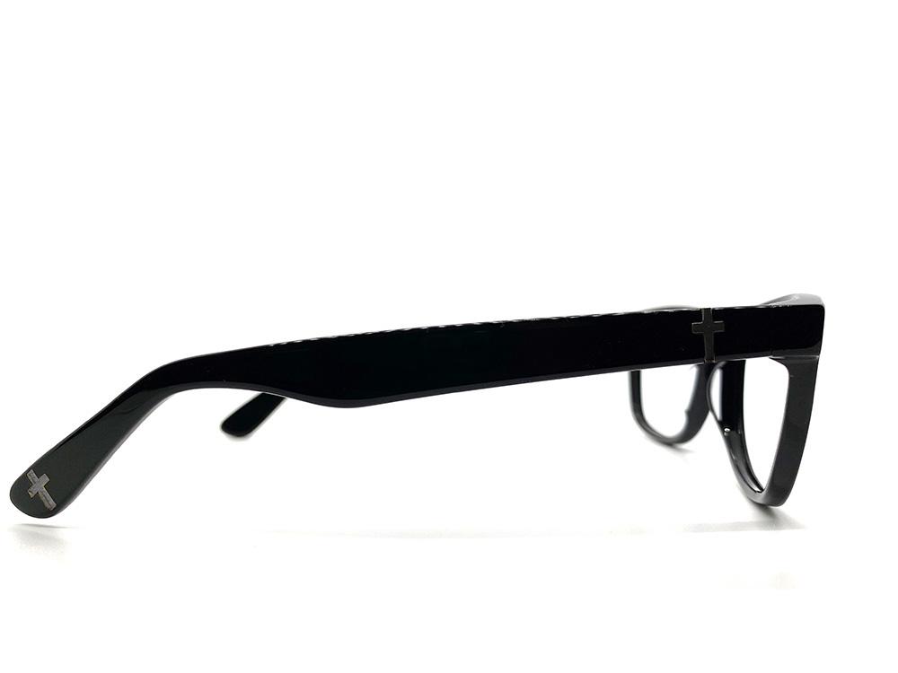 The John 3:16 Black With Silver Crosses are beautiful black acetate shiny frames with a silver cross on each temple and temple tip. They have a classic, never out of style, look similar to the Ray-Ban New Wayfarers.
